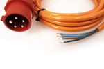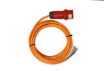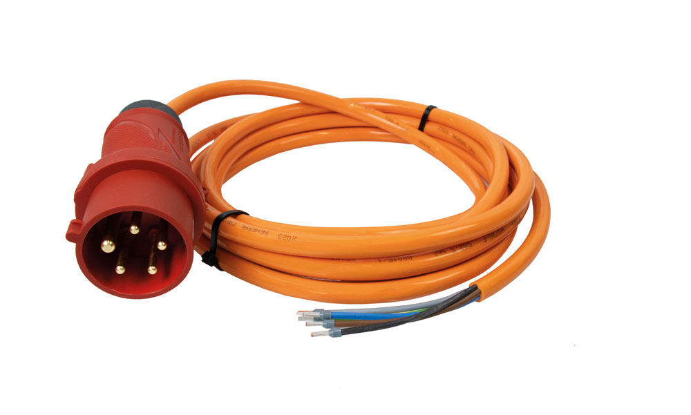 Maschinenanschlussleitung mit PowerTOPXtra 16A5p6h 400V IP54, CEE-Verlängerungskabel 16A MENNEKES 5, Länge: 5m, H07BQ-F Orange 5G2,5 Polyurethan-Außenmantel - außergewöhnlich abrieb-, schnitt- und reißfest, hochflexibel - Stecker. Vorbereitet mit Aderendhülsen zum Direktanschluss an Maschinen. MENNEKES PowerTOPXtra, CEE 16A 5-polig 6h IP54, Stückgutgeprüft