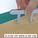 Kreisschneider aus robustem Druckguss zum Schneiden von Kreisen mit einem Durchmesser von 1 bis 14 cm. Er schneidet nicht nur Kreise, sondern auch parallele Linien mit an beiden Schenkeln befestigten Klingen. Kann auch als Teilgerät mit an beiden Schenkeln befestigten Nadeln verwendet werden.
