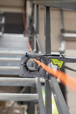 Mit seinem geringen Eigengewicht von 850 g kommt der FLEXIPASS selbst an leichten Kabelrinnen problemlos zum Einsatz. So einfach geht’s: Positionieren Sie den FLEXIPASS an der Kabeltrasse und fixieren Sie ihn schnell und einfach mit der Einhand-Spannmechanik. Ohne umständliches Verschrauben hält der FLEXIPASS mit seinen gummierten Spannflächen – kein Verrutschen, kein Kippen. Jetzt Kabel einlegen, mit dem Riegel sichern und der FLEXIPASS ist bereit zum Abrollen.